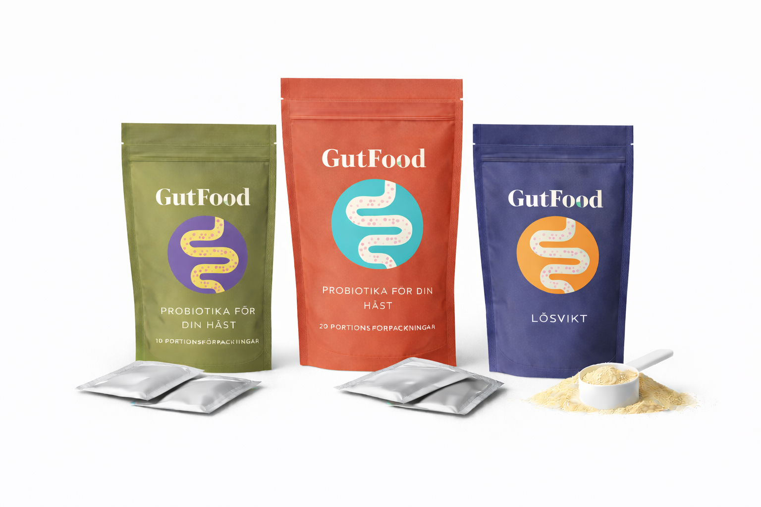 GutFood är en probiotika för häst med fokus på tarmbalans. Probiotika tillför levande bakterier som kan bidra till att stödja hästens tarmflora, särskilt när balansen rubbas av exempelvis foderbyte eller stress.